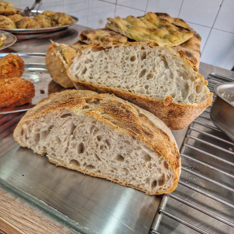 Il nostro pane, cuore della tradizione romana, è fatto in casa con farine selezionate. Ogni giorno sforniamo fragranza e sapore autentico, perfetto per accompagnare la nostra pizza in teglia. Un morso di genuinità che esalta ogni sapore.